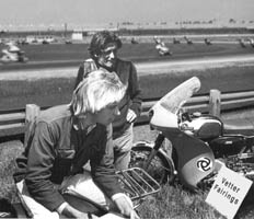 | Well, we didn't sell much. I flew to California, picked up a new Yamaha 350 and drove it to Daytona. The fairings did not get finished back in Illinois but Jim Miller and Bruce brought pieces and tools to make 25 fairings. Duane Anderson put his Yamaha up as collateral for an electrical generator and we set up camp on the abandoned WW2 airstrip west of the track now a fly-in subdivsion known as Spruce Creek. In 1967, it was just a lot of sand. My brother and I rode out to the Daytona infield, set up a cardboard sign and waited for people to buy. We sold two. But it was enough money to all eat at the House of Pancakes and have gas money to ride back to Illinois. | |||||||||||||||||||||||||||||||||||||||||||||||||||||||||||||