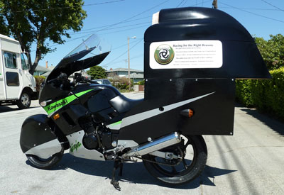 | July 11, 2011 Jack says: "I've been working on a 100 mpg goal. It's not there yet--at least not the way I normally drive--and won't get even close under Vetter conditions (you go faster than I usually go), so it can serve as a counterpoint to show the advantages of bikes for single person transportation efficiency. But I shouldn't have any trouble keeping up with the pack, and I can carry lots of groceries. :-) "I do hope to have a bike or trike as a Craig Vetter Challenge entry next year, but for now I've got MAX. It'll be an interesting comparison." Craig says: Deep down inside, I think it will be easier to streamline a 4 wheeler. We appreciate your coming, Jack. I have heard a lot about you. | |||||||||||||||||||||||||||||||||||||||||||