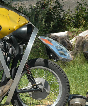 | Fred Hayes and Joshua Chen helped me to refine the Helix streamlining, translating the aluminum components into perfect CAD files. Assembly is now accurate and easy. It is time to see how the Vetter Streamliner Kit fits the various machines. Treven Baker rode his Diesel over... Alan Smith rode his Ninja. We did some test fitting: | ||||||||||||||||||||||||||||||||||||||||||||||||||