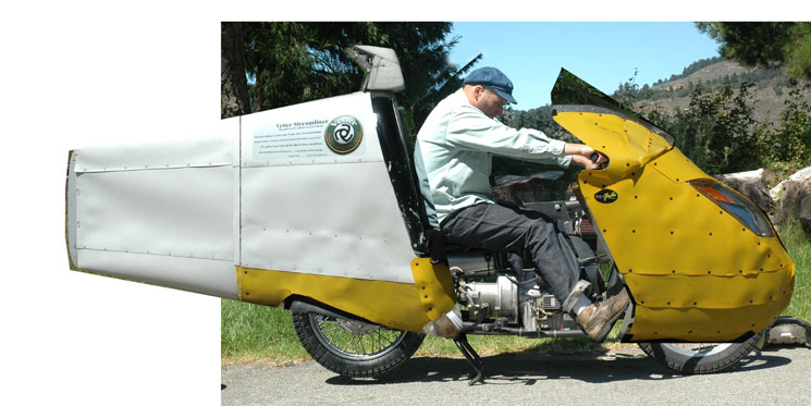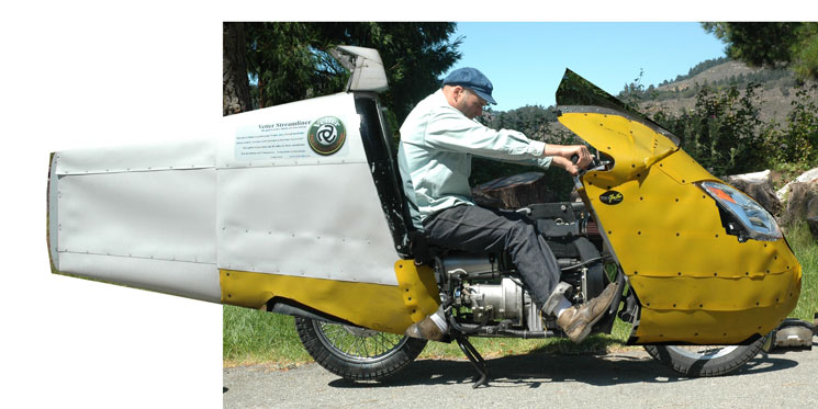 | Streamliner Nose Kit: Designed to accept the very streamlined Prius 2004-2006 headlights - which come with built - in turn signals! $140 a set with free shipping on EBAY. Try to buy any motorcycle headlight / turn signal for $140. Try to find headlights that are streamlined. | ||||||||||||||||||||||||||||||||||||||||||||||||||