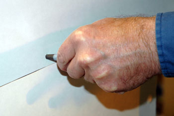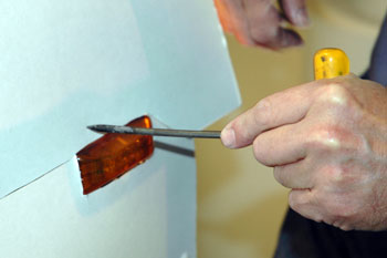 | Our first Kit of Banana Tacks These can be painted. The Streamlined body on Alan's Ninja took 86 Banana Tacks. The Tail took 36 more. | Punch a hole in Milk Carton Paper We pre-drilled the aluminum with 1/4" holes and shined a light from the inside to see where to punch | |||||||||||||||||||||||||||||||||||||||||||||||||||||||||||