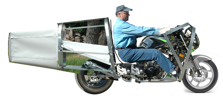 | Alan Smith is the perfect person to help streamline. He rides his Ninja 250 everywhere. He keeps records, too which means he knows the effects of any changes. I knew he was serious about fuel economy when showed up at the Quail Event this summer with his own streamlining. He 4th place and beat me on my sreamlined Helix. Then he rode that same 250 to Virginia and back on the way, stopping at the AMA Vintage Days Challenge, taking 4th place (and beating me again) before riding it back to California. | ![]() | ||||||||||||||||||||||||||||||||||||