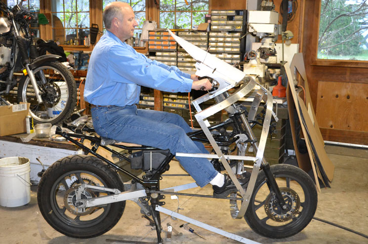 | Not good The bodywork structure needs to be parallel to the rotation of the forks. We discovered that the streamlining body structure had shifted and was no longer parallel. His bars had to be lowered, too. It is good to find these mistakes now when they are easy to fix. | ||||||||||||||||||||||||||||||||||||||
