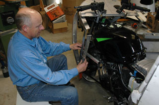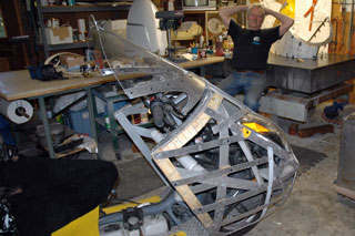 | On this side... Alan Smith streamlining his Ninja 250 | Over here... Craig Vetter rebuilding his Helix Streamliner | ||||||||||||||||||||