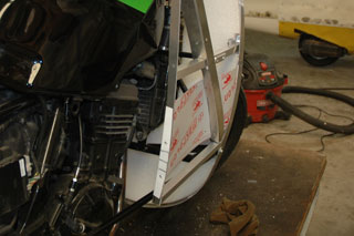 | Extending the streamlining Because the Ninja rider uses footpegs, the sides of the streamlining can be extended to the rear more. | Jigs and fixtures Making a plywood fixture that will help me to accurately make my streamliner nose. | ||||||||||||||||||||