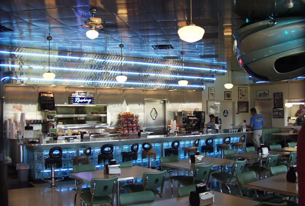 | The "Wizard's Cafe" features really good American food in a glitzty restaurant built around a Corbin Merlin, bolted upside down in the ceiling. After a factory tour, it is a good place to spend your time. | |||||||||||
