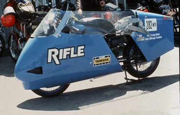 | #6 Brenda and Hurley Wilvert's Kawasaki: 80cc two stroke. 112 mpg and I don't think thay changed anything. We all realize that a hot little 80 has enough power. The Wilverts proved it. The fact is, however, this was the last year that a stock machine could compete. The contest was becoming sophisticated. | #7 Craig Vetter's Streamliner: Resurrected from its devastating 1981 crash in the hands Joe Minton, this was the last year for my Streamliner. I had guessed that 250cc would be needed but I was wrong. Contestants with much smaller engines were getting the job done with much less fuel. This machine is now a permanent part of the Hall of Fame Museum in Ohio. | |||||||||||||||||||||||||||