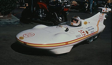 | #1 Charly Perethian: Cutting edge technology. Charly had the formula of the right sized engine and good streamlining | #2 Debbie Evans: Debbie is and was a professional rider. She does movie stunts but she could not keep this thing upright. The Honda Team machine had too much flat side surface and blew over easily in the fierce Pacific Ocean winds. Also, it took assistence to get in and out which is impractical. The whole point of my contests was to improve real motorcycling | |||||||||||||||||||||||||||