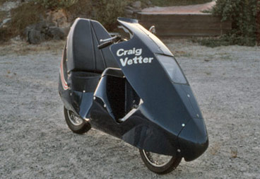 | #5 Matt Guzzetta: Matt began his carreer as a motorcycle designer in England working on Triumph projects. He learned how to get streamlined working with LSR record holder, Don Vesco. Matt's bike wonderfully fit the spirit of the Craig Vetter Fuel Economy contests being a rideable machine that fit right on American highways. | ||||||||||||||||||||||||||||