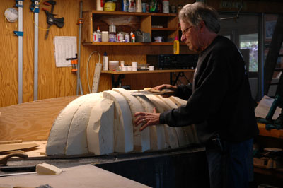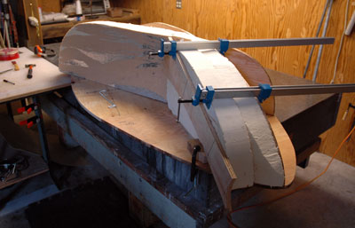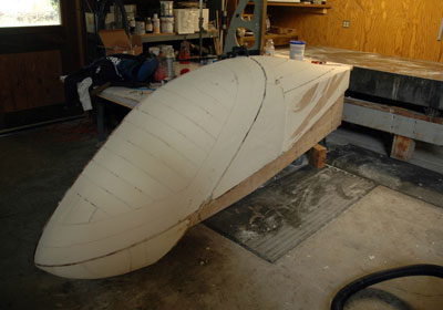 | After a while, its streamlined fishy shape begins to emerge. I find this to be pretty satisfying work. Checking my E mails, it is clear that at least a few interested folks are following along with me. The price of used Helix scooters may be going up, too.. | |||||||||||||||