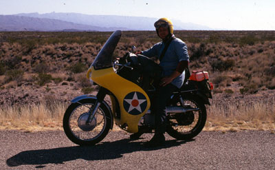 | Duane Anderson, Roger Stiller and I were on brand new Kawasaki 500s. Jim Miller was on his 350 Yamaha. Jim was my trusted friend and in second in command at Vetter. We did not have money for real commercial display space. To get noticed, we had painted our fairings in flamboyant colors. Sunday morning we headed north to Illinois.