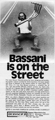 Darryl Bassani made the special Four into One "Quiet Pipe" for me. I was the quietest racer on any of the tracks. Bassani is still making great pipes!