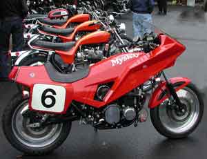 How is this for a rare sight? A Mystery Ship, three Triumph Hurricanes and an original BSA Rocket 3! What we have here are some of the motorcycles that appeared at the AMA's First Annual Hall of Fame Concours. You can see here the influence of "tail-dragger" airplanes in Vetter designs. It is an agressive stance... poised to take off. | |||||||||||||||||||||||||||||||