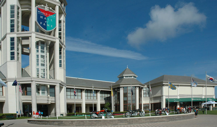 | Some 350 motorcycles were arranged around the circular lake of the World Golf Village | ||||||||||||||||||||||||||||||