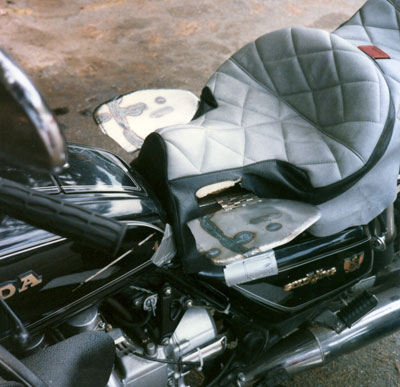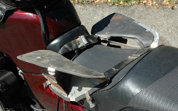 | Motorcycle seats have changed a bit since 1984. To work properly today, things would have to be reshaped. It is still a good idea. | ||||||||||||||||||