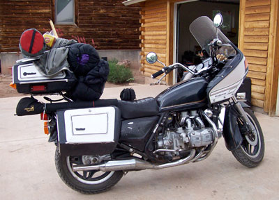 | James Hill writes: Last October my son and I bought two Goldwings on Craig's List. Mine has a Windjammer V fairing, trunk and sidebags, unfortunately well abused. I want to repaint the bike and fairing and bags, but I have never tried painting ABS plastic. Any suggestions for a successful paint job would be appreciated. I am including a picture of the bike loaded and ready to tour northern NM on a camping and fly fishing trip. We did 1000 miles in 9 days and had a ball. | |||||||||||||||||||||||||||||||