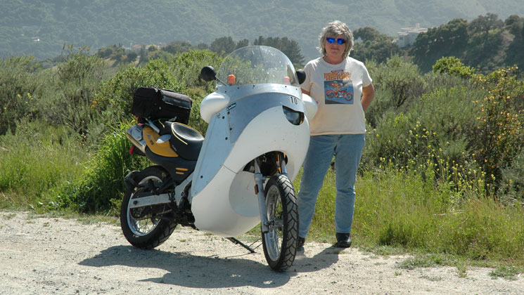 | Carol Vetter with her #10 Alcan Fairing. It was time for a Corbin seat. | ||||||||||||||||||||||||||||||||||||||