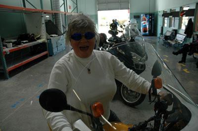 | Before we were finished with lunch, Carol was asked to come out and do a "Trial Sit" on her BMW. Then it was my turn. We had heard that Corbin seats would make a big difference. | ||||||||||||||||||||||||||||||||||||||