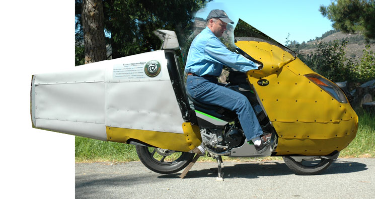 Sure looks big on that little bike... until you remember that Vetter streamlining is made for the person, too, not the just machine. | |||||||||||||||||||||||||||||||||||||||||||||