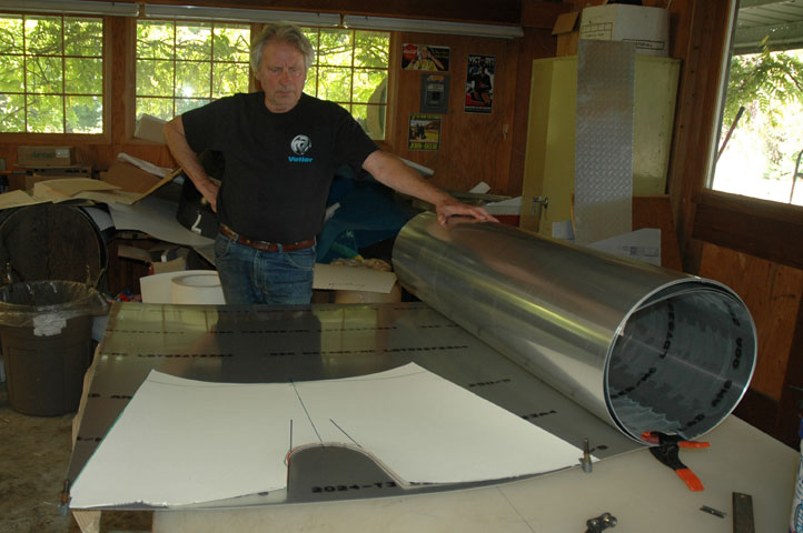 After two years of watching how the elements affect my streamlined Helix bodywork, I can see that the lower portion of the body ought to be more durable and have more substance. Randy Schlitter of RanSport - a designer and manufacturer of homebuilt airplanes - suggested I try .020" aluminum. I ordered a roll from Aircraft Spruce. | |||||||||||||||||||||||||||||||||||||||||||||||||||||