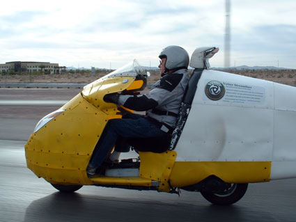 ![]() | 133.2 mpg Fred Hayes says: "The streamliner had a bit taller gearing, but otherwise was the same as I rode at Mid Ohio. (143.5 mpg) My hands were exposed and got a bit cold. Warm air from the radiator kept my body core and legs very comfortable. I felt some buffeting around my head at speeds over 75 mph. | |||||||||||||||||||||||||||||||||||||||||||||||||||||||