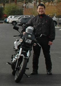 And once again, the order of finishers was the same as in previous events: First Place: Fred Hayes and his zippy Diesel Streamliner: 133.2 mpg Second Place: Alan Smith on his new tailed 250 Ninja: 95.9 mpg Third Place: Joshua Chen on Fred's other Diesel: 95.3 mpg Fourth Place: Craig's 250 Helix: 92.9 mpg Fifth Place: Vic Valdes on his Vision 550: 61.9 mpg Turns out it was an easy, 173 mile ride. We encountered a strong headwind at first... then blustery side winds... and then a slight tail wind. I led, setting the pace... indicating 72-73 mph (possibly speeding). The other riders speedometers read even higher. Even so, most cars passed us. Since this was a test ride to evaluate the possibilities of a Las Vegas to Barstow Challenge, we did not pack groceries or take into account the cost of the fuel. At the next Challenge, however, be prepared to carry the groceries and to measure the results in dollars and cents. Here are the Challengers' comments: | ||||||||||||||||||||||||||||||||||||||||||||||||||||||||