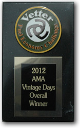Best Traditional Fuel: This will be Gasoline and Diesel sold at a common station in close proximity to the end of the challenge. Since you are expected to arrive at the Challenge filled, Challengers will be on their honor to certify that they consumed the same type and grade of fuel consumed during the Challenge. The Best Traditional Fuel award will go to the Challenger that meets the Vetter Conditions* while consuming the least fuel as measured in dollars and cents. Results will be posted in both mpg and cost per mile. Best Electric Electric Challengers are not yet expected to go the standard 100 or so miles. That said, we will identify the “Best Electric” as follows: Electric Challengers will agree among themselves how far they will ride on the Vetter Challenge before turning around and returning to the starting grid. The return ride will be led by a rider with nerves of steel, at the same speeds as on the route out. Upon returning, the electric Challengers will recharge their vehicles from the grid. They will be responsible determining the cost of the electricity actually used per machine. Applicable road taxes by definition the same cost per mile that Craig Vetter’s Challenge machine consumes - will be added to get a final cost. Results will be posted as cost per mile. Of course, any electric Challengers able to go the route meeting the Vetter Conditions* can also be considered to be the “Overall Winner.” Best Alternative Fuel - New category We want to encourage innovation in machines and fuel. Therefore, this category will include bio-fuels, like bio-Diesel and ethanol blends of 20% or better... energy sources not generally available at gas stations. All other fuel sources will fall into this category until further notice. The cost of any alternate energy fuel will be the most reasonable local cost, including local taxes. It will be the Alternate Fuel Challenger's responsibility to provide proof of cost. Some Alternative Fuels will be "outside the law," not having been thought of as vehicle fuel. If road taxes have not been figured into the cost of the Alternative Fuel, the same tax cost per mile that Craig Vetter’s Challenge machine consumes will be added. Should there be any disagreement, Craig Vetter will make the final decision. The Overall Winner | |||||||||||||||||||||||||||||||||||||||||||||||||||||||||||||||||