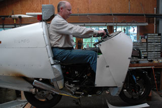 On this side... Alan Smith streamlining his Ninja 250 | Over here... Craig Vetter rebuilding his Helix Streamliner | ||||||||||||||||||||