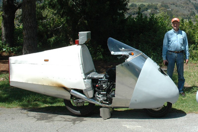 Hi Craig I just want to say thanks to you and all of your family for putting on this event. What I have learned from participating in the Vetter Challenge is that although my bike is quit an improvement over the stock GS500 it still has a long way to go, before it gets to, as good as it can get. I suspect that although a 500 cc bike is to big to win the Vetter Challenge I believe that 100 mpg is possible. My plans for next year are; finish the full streamlining on the Honda VT500 and the Honda CBR600 with the objective of getting into the 90 mpg zone on a 500 cc or 600 cc bike. Ron | ||||||||||||||||||||||||||||||||||||||||||||
