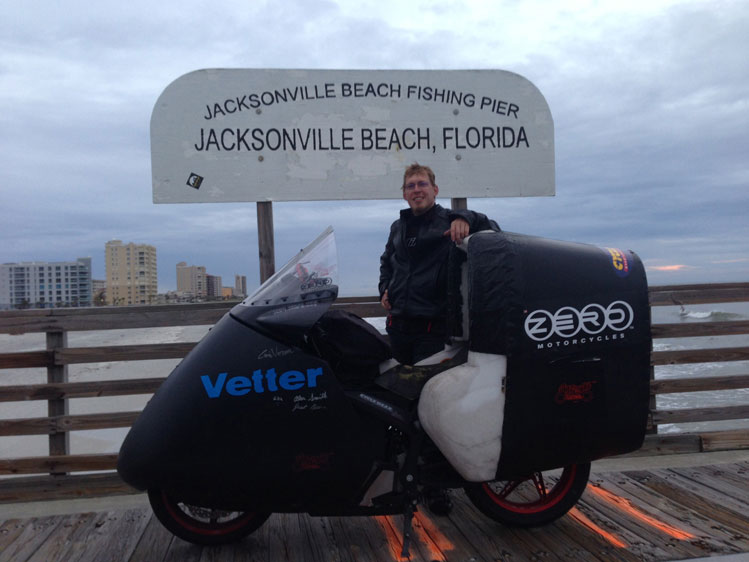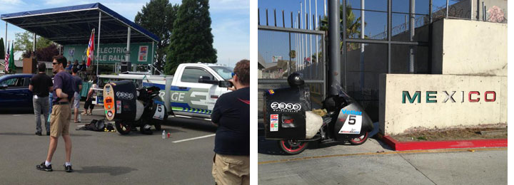 Right after arriving in Jacksonville, after his Record Setting California to Florida ride, Terry rode his electric Zero to Seattle, arriving just in time to depart for the Mexican border, taking 2nd place behind the TeslaTem. Terry Hershner does not sleep much. | ||||||||||||||||||||