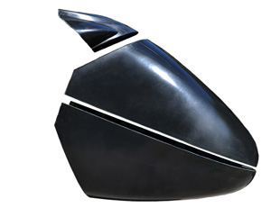 Several inches must be removed from the mating edges on Alan's radical new streamliner .Sitting lower reduces makes the two nose pieces overlap. The Turret Top (in white) rotates. The Nose (black) is fixed to the frame. | ||||||||||||||||||||||||||||||||||||||||||||||||