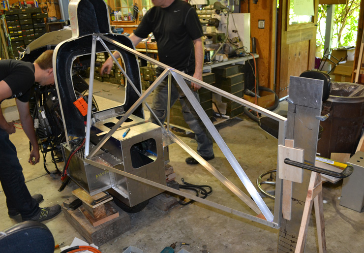 Basically, what we are doing is building a big box around the rear of the Zero to hold the batteries. Each one weighs around 60 pounds. Once this structure is solid, we will add the seat, floorboards, seatback bulkhead and the tail. As you would expect, the entire rear section comes off with 3 bolts, just like the nose. | ||||||||||||||||||||||||||||||||||||||