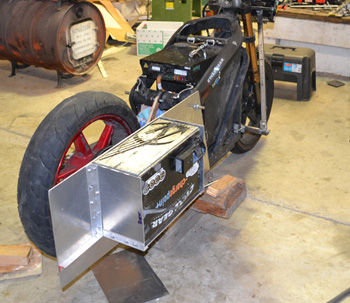 Terry has 5 batteries* totaling 18kW hours of power. Three (integrated) batteries are already mounted inside the frame up front. We need to mount the other two at the rear. Because the nose is wider, the tail can be wider to match. Now, we can mount the batteries lower and wider. *He has one more 3kW hour battery he can add for record rides. | ||||||||||||||||||||||||||||||||||||||