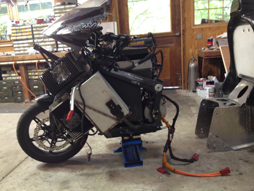 There was another issue: With all the batteries in place and Terry sitting, the rear of the bike was lower than we wanted. This was the time to make everything right. Fortunately, we have made the bike easy to work on. | ||||||||||||||||||||||||
