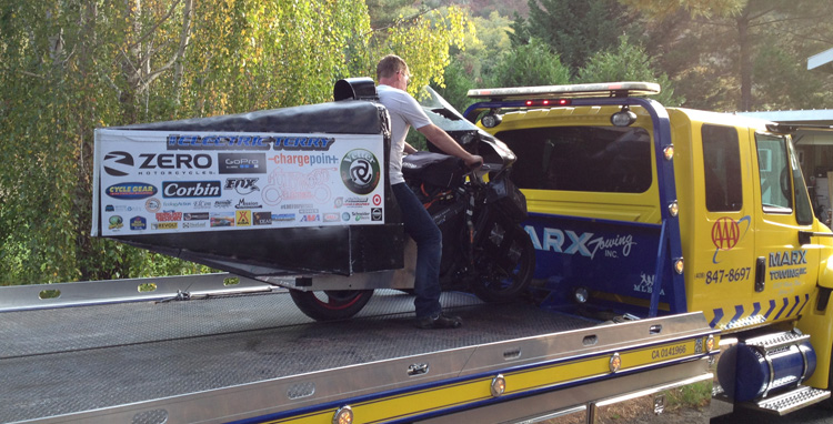 August 6, 2014: The 170 mile Bonneville Challenge was coming up in three weeks. Terry was ready. We had made a lot of changes which meant a lot of test riding was needed. On a particularly fast test ride, Terry hit a bad pothole. The rear wheel bounced higher than expected into the new aluminum structure. The tire snagged the aluminum plate Terry sat on and stopped immediately. Terry had to call a tow truck. | ||||||||||||||||||||||||