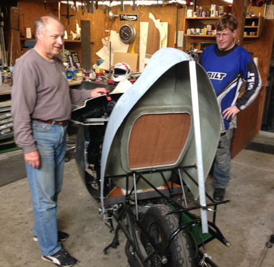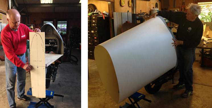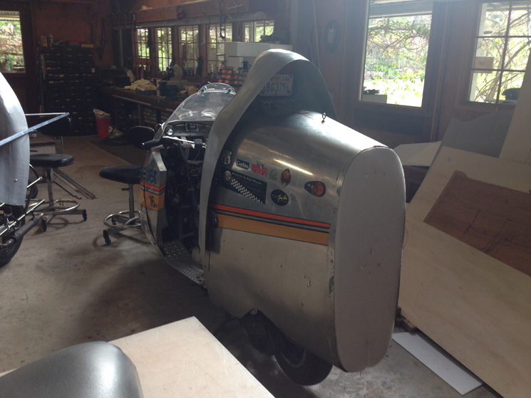 We decided to cover the shape with aluminum tape and have a thin mold made over it. I had never done this before but it worked. Ignacio made the mold and a part for Alan to put on his "LowBoy" Ninja Streamliner. | |||||||||||||||||||||||||||||