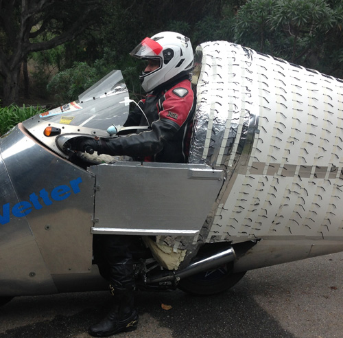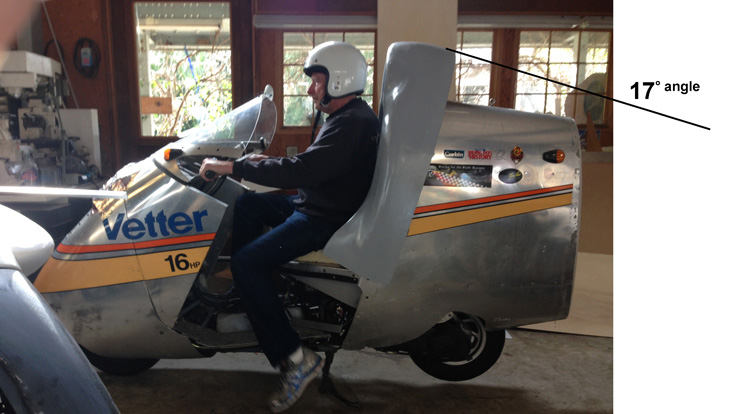 Alan Smith really wants to win. By January, 2015, we had developed a seatback that allowed the air to flow smoothly past Alan on his Ninja 250 Streamliner. It was strange looking even to our eyes. | |||||||||||||||||||||||||||||