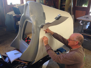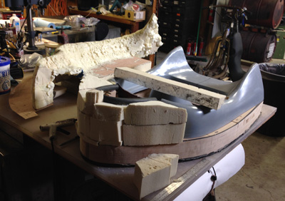It began to look pretty good. The finished shape is 2" wider on both sides and more rounded. More frontal area seems wrong. But the tufts are flowing straighter. Arnold Wagner said we needed to do this. | |||||||||||||||||||||||||||||