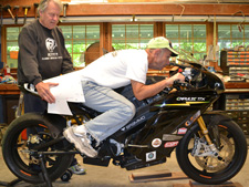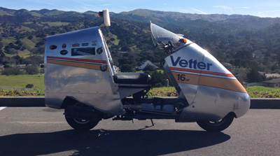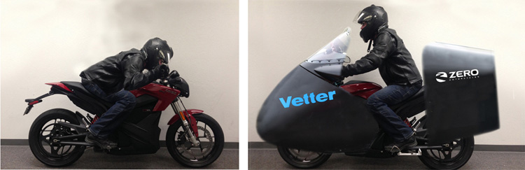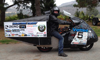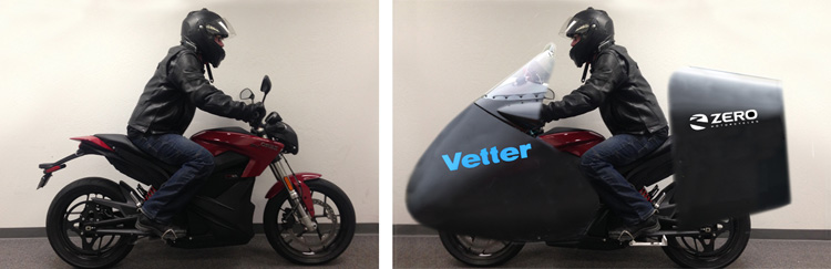 Almost every part has been changed Terry increases his range by 100% over a stock Zero at 70-80mph. But the tail is long for the best streamlining. Vetter Challenge Rules reward people for riding in comfort, carrying a useful load*, and being the first choice vehicle in the garage. After meeting these requirements, the winner is determined by using the least energy as measures in dollars and cents. Terry's Streamlined Zero has been the mark to beat. *A useful load is defined as 4 bags of groceries | ||||||||||||||||||||||||||||||||||||||||||