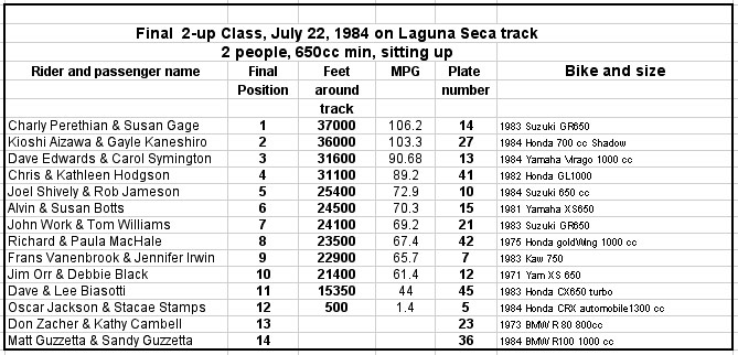 The next day, the top 2-up bikes competed at Laguna Seca on a nickel's worth of gas | |||||||||||||||||||