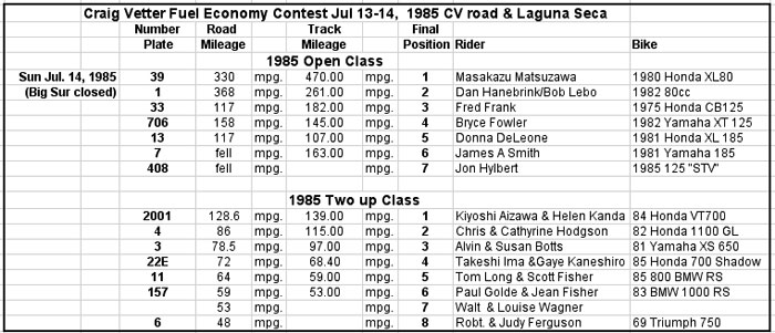 Results of the 1985 Open Class | Results of the 1985 "2-Up" Class | ||||||||||||||||