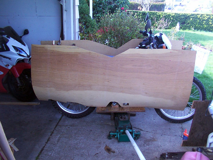 Hi Craig, Here is my update of my CRF230L streamliner project: The recent very heavy rain has slowed my progress on my streamliner project, my garage flooded. Last weekend I made some good progress, see attached photo. I have the mounting brackets completed and the sides of my streamliner roughed out. If the weather is good this weekend I’ll get started shaping the foam for the nose. The streamlined trunk will be built afterward. From your results of riding with and without a tail I plan to leave the rear of my streamliner cut off with an 8-inch width, the front will be approximately 24-inches wide. I can build an extended tail at a later date. My new sprockets for my CRF230L have not arrived yet. I’ll have to go to another source. Last night I saw Loran Guy (the organizer for the Quail Motorcycle Gathering) at an American Sport Bike Night (ASBN) motorcycle meeting. I talked to Loran about my concerns of sending a picture of my unfinished streamliner on the entry form. Loran said not to worry. Feb 2, 2010: An update on my gas mileage runs: 3328 miles- 92.12 MPG ( Two trips to work) 3470 miles- 94.5 MPG (Play ride with other motorcyclists: Redwood Rd., Grizzly Peak Rd., Bear Creek Rd., Morgan Territory Rd. etc. Speeds ranged from 35-65 MPH.) | ||||||||||||||||||