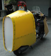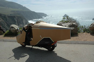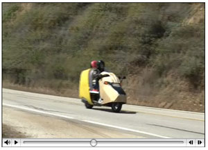 As you can see, it is not really hard to design and build a streamlined vehicle. It just takes time and perseverance. My experience so far is that if driven hard... 65 mph on the freeway, both the red and the black Helix get 60 mpg. The foamboard streamlining made no difference in mileage. It was just for side wind testing. Putting around, running errands, without much freeway travel, mileage goes to 64 mpg. What is interesting about my first trip on the yellow tailed machine is that mileage instantly went to 69 mpg, running hard. I must put it back in my shop to build the front, so it will be some time before I can make a backup run to verify this 69 mpg figure. Actually, until the thing has its tail and is completely enclosed, I really do not expect any change in mileage. Let me mention this: Into the fierce 50 mph wind coming back from Big Sur, I opened the semi streamlined, yellow tailed Helix up on the only straight section there is. It actually got up to its top speed of 71 with no effort. It felt as if there was no headwind at all. It still gave me 69 mpg. I'd call this encouraging, wouldn't you? | ||||||||||||||||||||||||||||||||||||||||||||||||||||||||