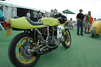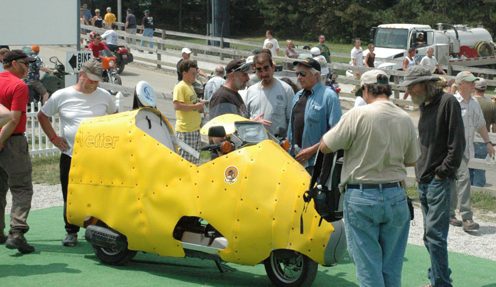 My Rickman Racer of 1975 was designed to go fast around a track. My Triumph Hurricane of 1973 was designed to help save Triumph. My Streamliner is designed to do more with less fuel. The world changes. We must change with it. This was never so apparent than seeing these machines together in the same place. These eras were fun. Today, we need to be serious about burning less fuel. It is still fun. | |||||||||||||||||||||