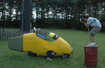 Over the weekend, I rode from Champaign Illinois to Columbus, Lexington, Indianapolis and home. 1200 miles in all. It is the most comfortable two wheeler I have ever ridden because of the great wind protection and great seat. This thing is a people magnet. Wherever I stopped, crowds would gather. I would explain that I was trying to get 100 mpg at 70 miles per hour, with four bags of groceries. The universal response was: "This is what we all want" So far, I really don't see much of an improvement in mileage because the streamlining is incomplete. The German Zeppelin makers must have felt the same frustrations. They too had to wait until everything was complete to see what they had. | |||||||||||||||||||||