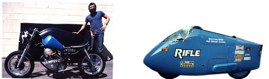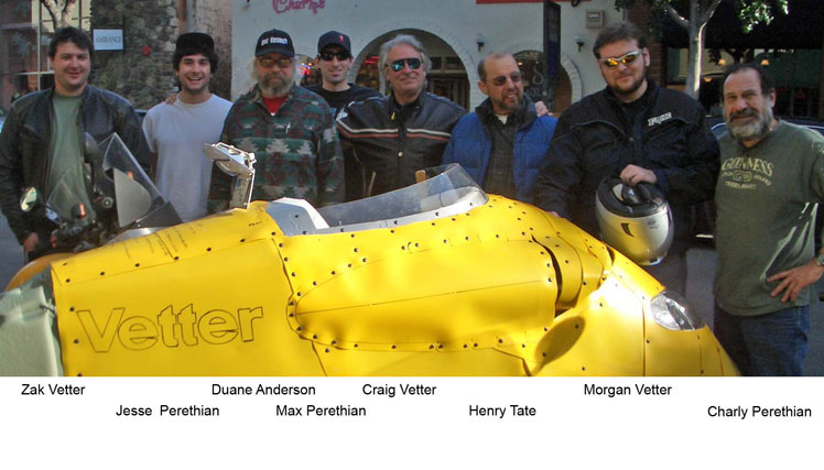 | Of course, those are our two sons, Zak and Morgan. Charly Perethan, at the far right, won the Craig Vetter Fuel Economy Contests three times! He and his sons, also very accomplished motorcyclists, own and operate Parabellum where they design and make fairings of his design. Duane Anderson, a college buddy from the 1960s, is now a designer for Rifle Fairings. In 1969, Duane did all the metalwork on the original model which became the Triumph Hurricane of 1973. Henry Tate is one of the smartest people I have ever met. He could - and would - build anything that was needed at Vetter. I am very proud of these people. My son, Zak, is 26 years old... the age I was when I began designing the Triumph Hurricane so long ago in the summer 1969. | |||||||||||||||||||||||||||||||||||||||||||||||||||||||||||||||||||