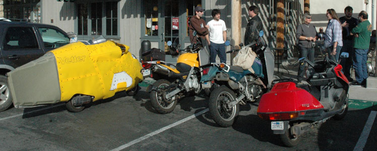 | Since San Luis Obispo is one of my factory locations from the 70s, many ex-Vetter fairing-wrights still live there. We had an unexpected happy reunion with some dear friends: | |||||||||||||||||||||||||||||||||||||||||||||||||||||||||||||||||||