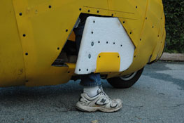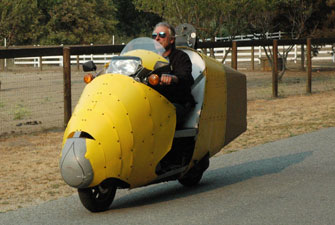 | Craig says: You bring up a good point. I must admit that 75 mph on the freeway just "Seems" too much for everything on the Helix. 10" rear wheel at 75? That is smaller than the ones on my trailer and I would not pull it at 75 mph! I had a chance last summer to spend time with Dick Mann, who is very knowledgable about motorcycle dynamics. Dick thinks 16" wheels offer the best compromise. While bigger tires should provide a more secure ride, they require a bigger "Smiley Face" cut out at front for turning, making streamlining even harder. Compromises, compromises. This is what design is all about. I love it. | |||||||||||||||||||||||||||||||||||||||||||||||||||||||||||||||||||