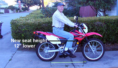 If you study pictures #4 and 5 carefully, it is obvious that the rear wheel is going to smack the pilot if the seat is lowered this much. The swing arm probably will need to be extended. Extra wheelbase is good because we are making a machine for the road. | |||||||||||||||||||||||||||||||||||||