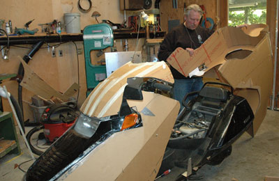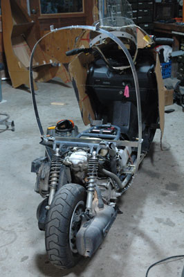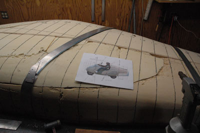 You can see how the structure is evolving. Unfortunately, most of what I do, I do two or 3 times before I get it right. My garbage can is full of mis-shapen streamliner parts. It is just part of the design process Looks simple, doesn't it? Simple and strong are what I think of as "Classic American Design" | ||||||||||||||||||||